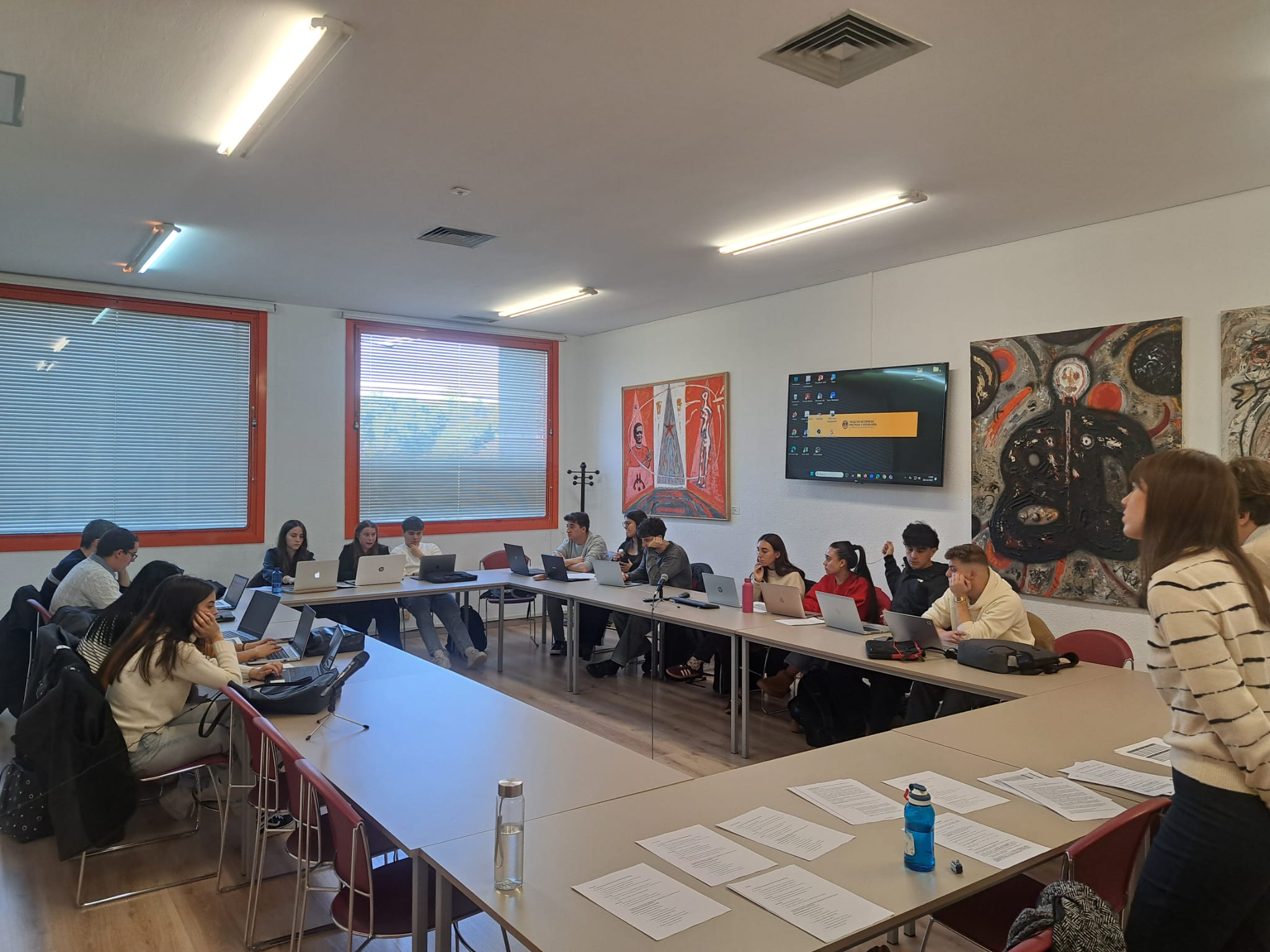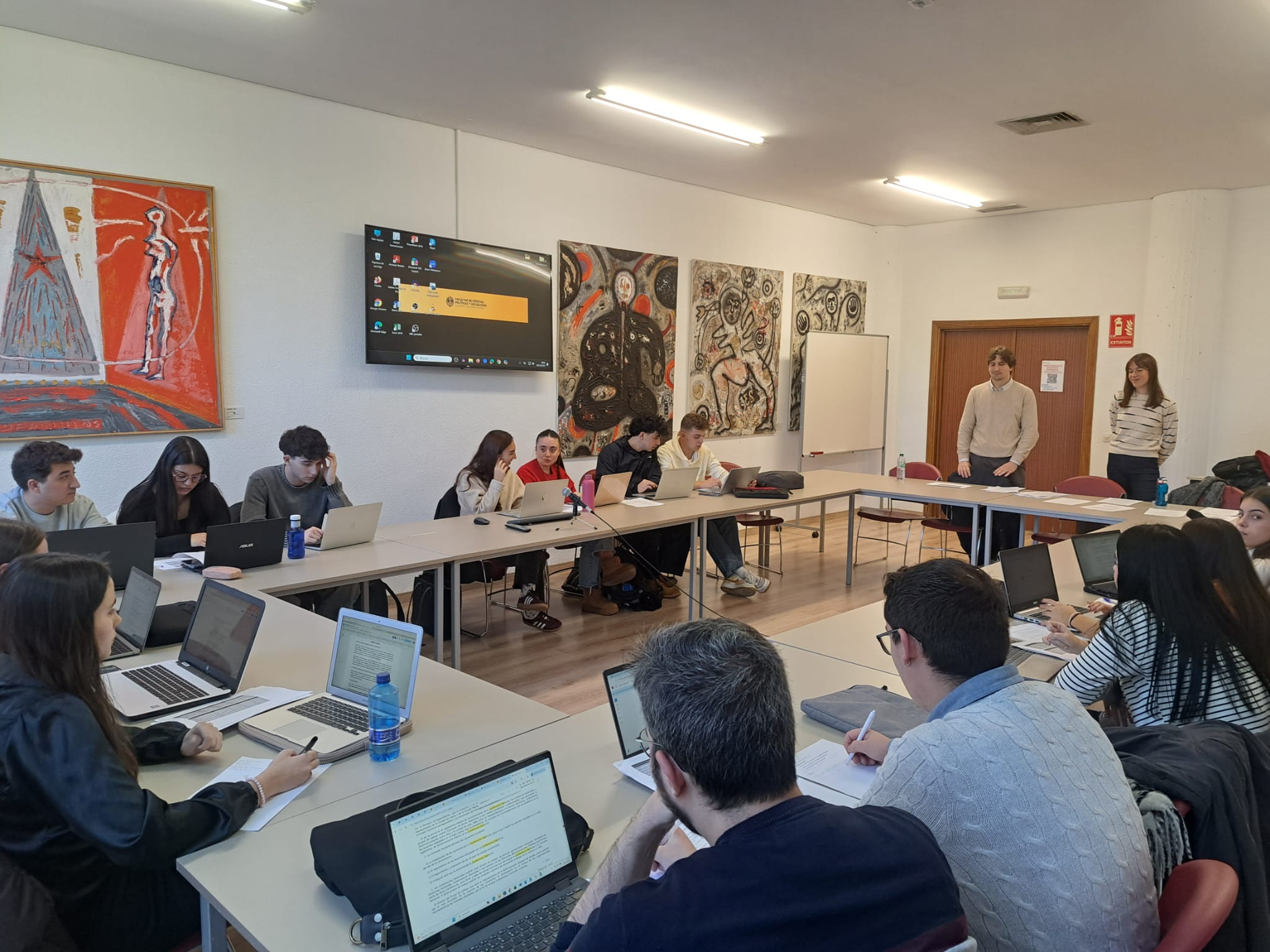 El pasado viernes los estudiantes de 4º curso del grado de Gestión y Administración Pública realizaron una simulación de una conferencia sectorial dentro de la asignatura de Relaciones Intergubernamentales. Se tuvo la suerte, para la dinamización de la actividad, de contar con la presencia de dos funcionarios de carrera del Cuerpo Superior de Administradores Civiles del Estado (como voluntarios por la Asociación ECAP), así como con la presencia de la Profa. María José García Solana, coordinadora de la titulación.